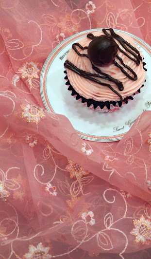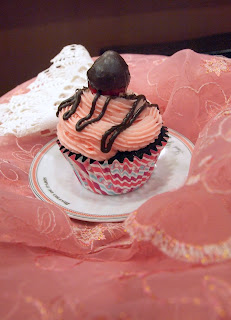 When I was a wee lass (Or maybe, like, a 23 year woman? Just maybe.) I loved chocolate covered cherries. I know a lot of people find them a less than favorable candy. Tooth achingly sweet and artificial cherries wrapped in chocolate? Um, Yes! I'm sorry, but they're awesome. As are the cupcakes versions. :)